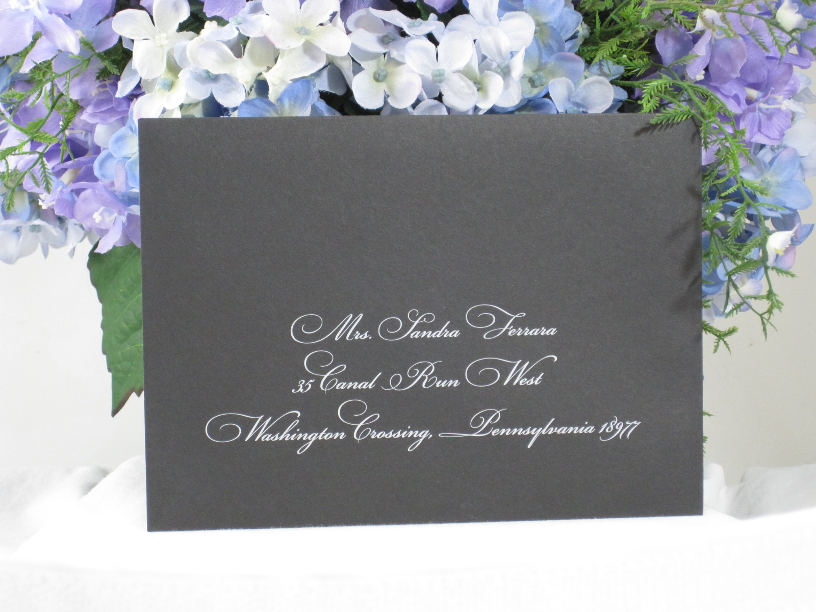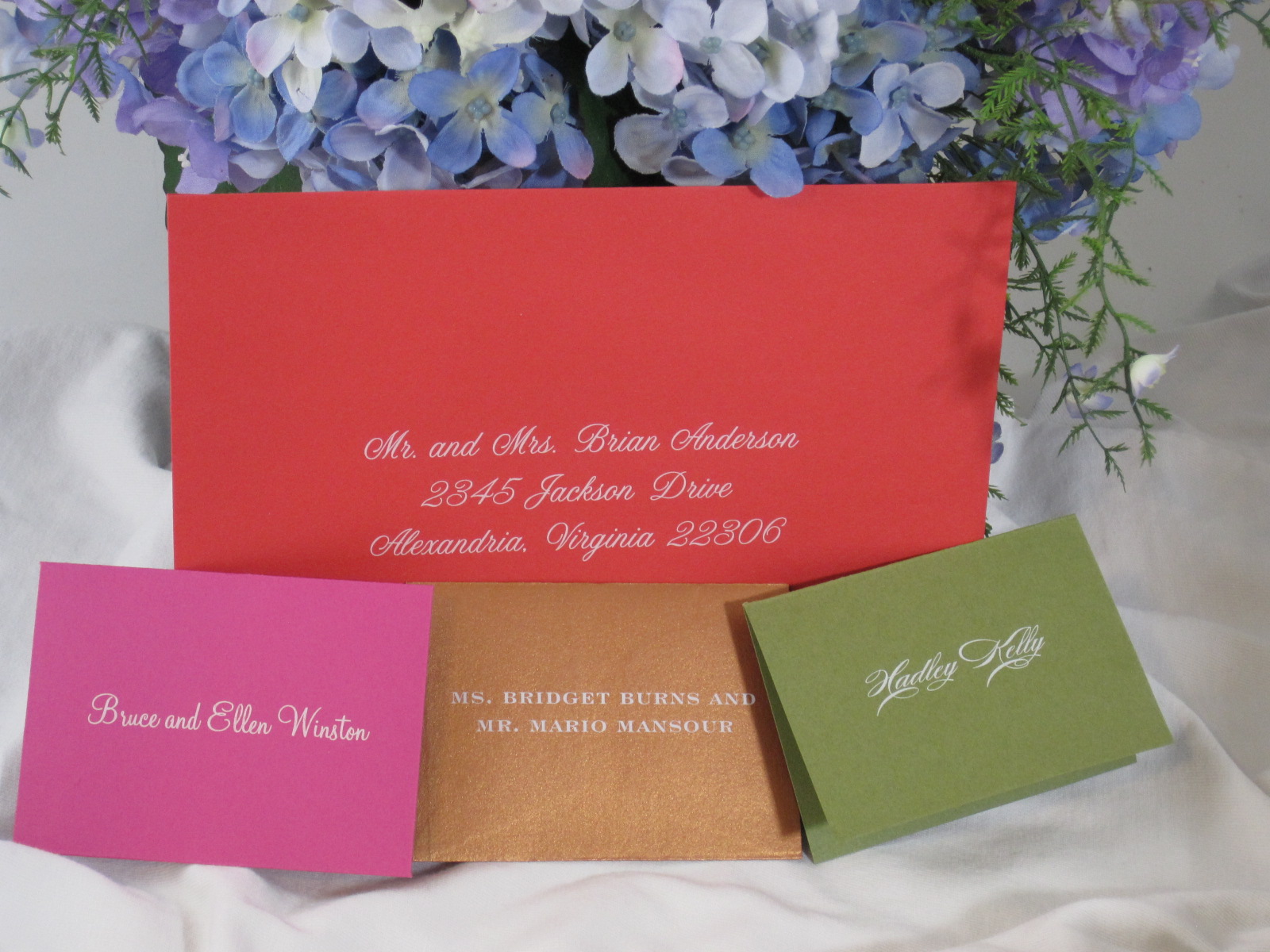 Examples of white ink on envelope and escort cards