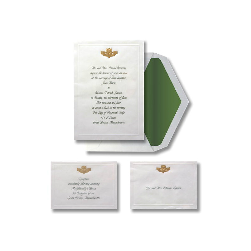 Gold Irish Claddagh at top of invitation